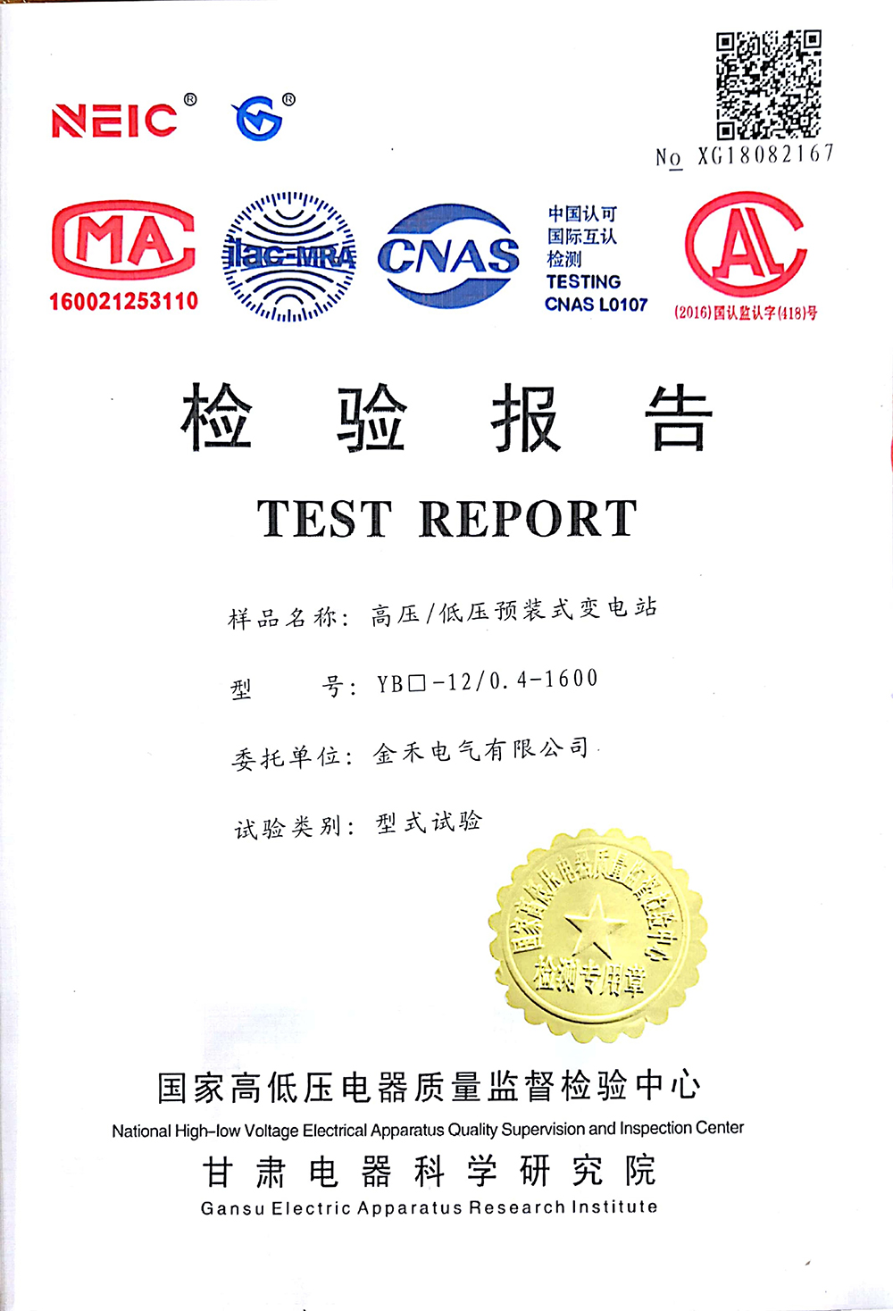 YB口-12/0.4-1600高压/低压预装式变电站 检验报告