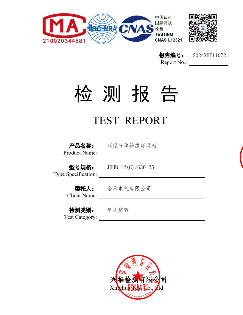 环保气体绝缘环网柜JHHB-12(C) 检测报告