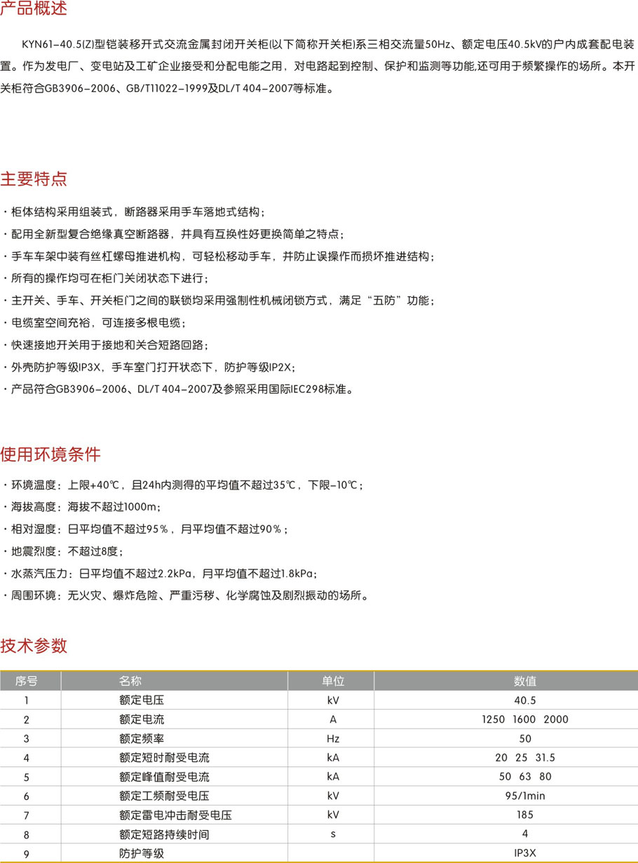 > KYN61-40.5铠装移开式交流金属封闭开关设备
