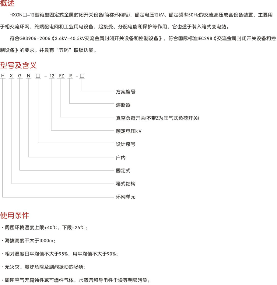 > HXGN□-12箱型固定式交流金属封闭开关设备