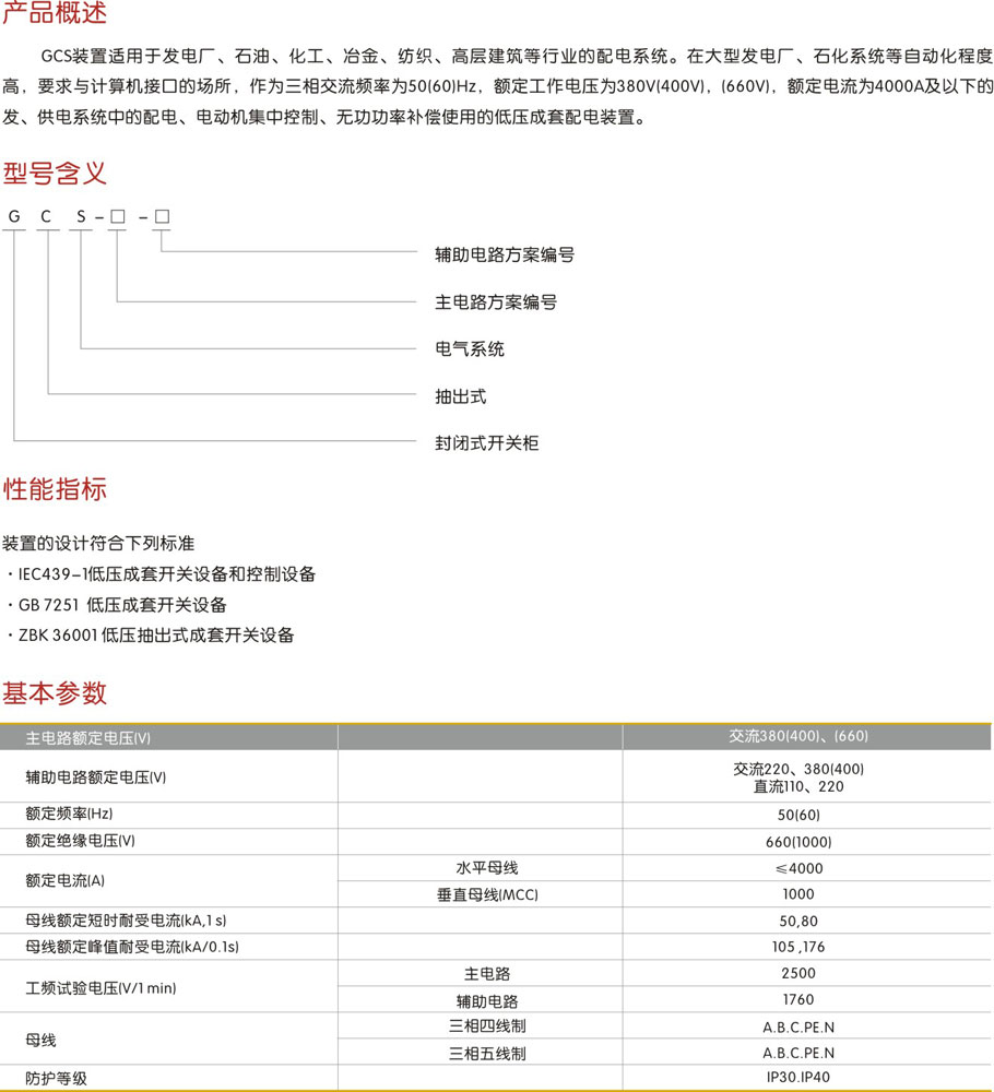 > GCS低压抽出式开关柜