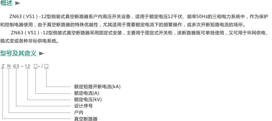 > ZN63(VS1)-12侧装式户内高压真空断路器