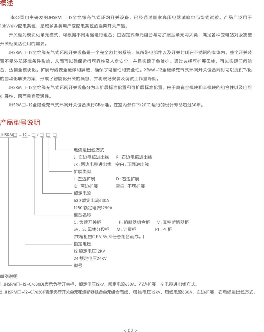 > JHSRM□-12系列全绝缘充气式环网开关设备