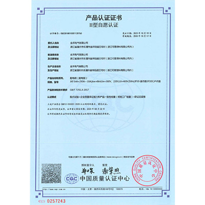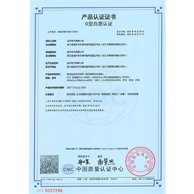 JXF配电箱 产品认证证书