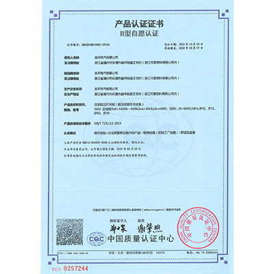 GGD 交流低压配电柜 产品认证证书